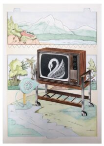 Motifs-motif: Audrey Aumégeas compiles Motifs drawn from all kinds of magazine media, such as L'illustration-ancienne revue, old school textbooks, engraving plates and advertisements. She often reproduces them in graphite, with meticulous drawing and a velvety finish that lends a touch of nostalgia to her work. The Motif of her creations results from the staging of the various motifs she associates, creating humorous playlets by diverting objects and images from their intended use to give them an anthropomorphic dimension. In counterpoint, Jérôme Touron's colorful Motifs replay a vast repertoire of abstract forms. Then drawings on the Motif by Fabrice Cazenave and Gabriel Folli, with his composite drawings.
