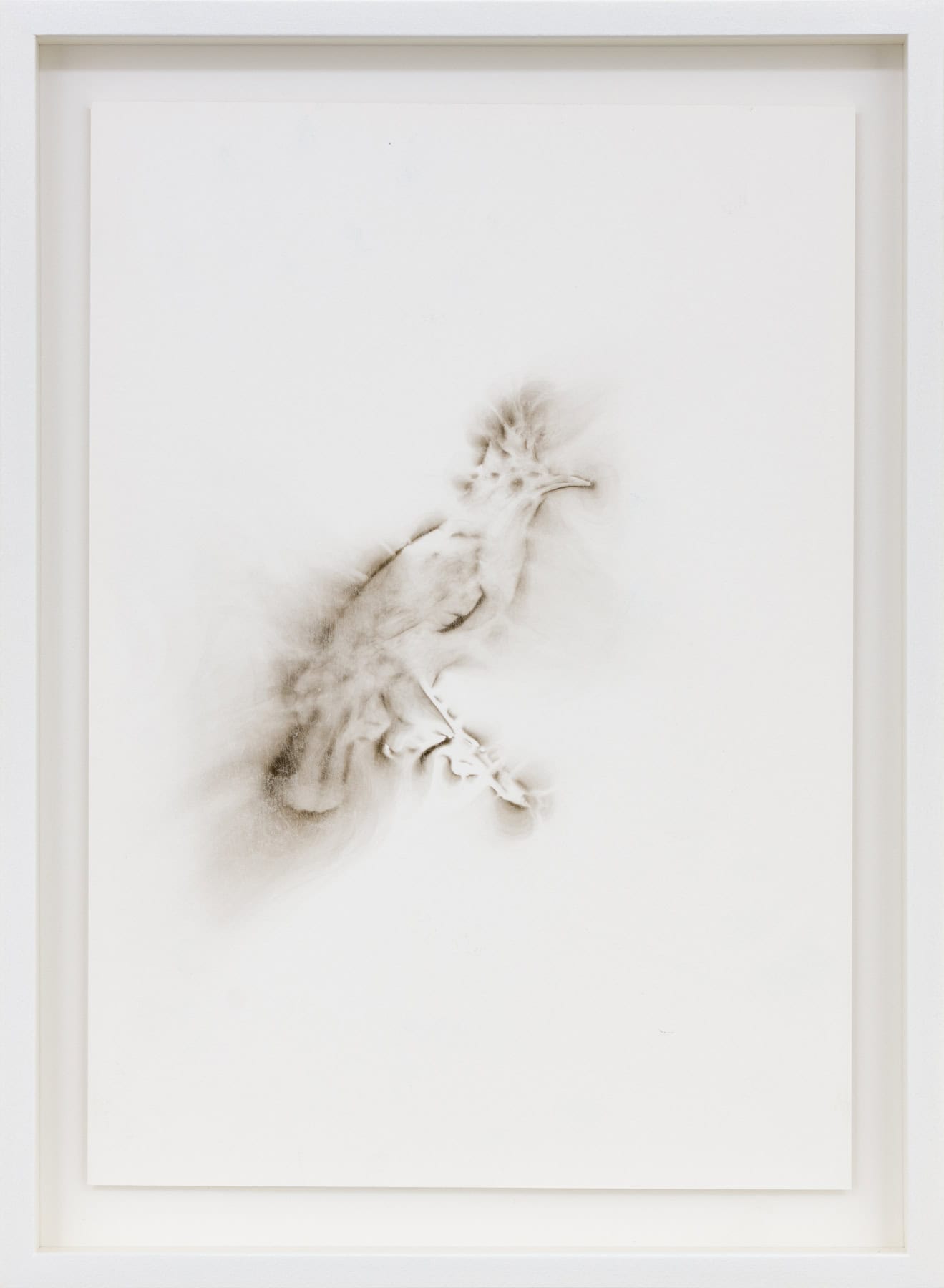 Trois séries de Roman Moriceau retracent l'évolution de sa pratique liée au fragile équilibre de la nature. Le dessin est la résultante d'un processus de rencontre entre une matière et le papier. L'image invoquée y porte un sens secret. Pour la série Mono no aware, Moriceau récupère des fleurs fanées. À l’aide de fumigènes de couleurs, il les impressionne sur papier. Propulsées hors cadre, elles disparaissent à leur tour en poussière. Avec la série des oiseaux révélés par de la fumée, Moriceau sauvegarde les contours fugitifs d'espèces disparues. La troisième série redonne vie à des matériaux rejetés. L'artiste glane ça et là différents vernis à ongles, provenant de l'industrie de la “fast fashion”, et raconte une autre histoire, celle de la mémoire collective.