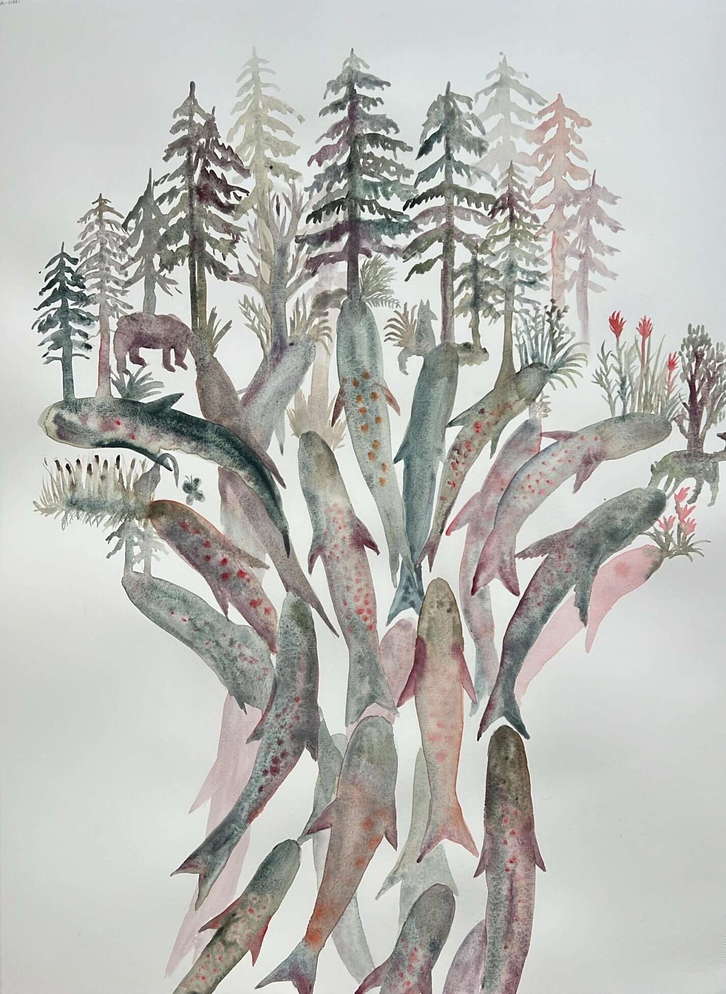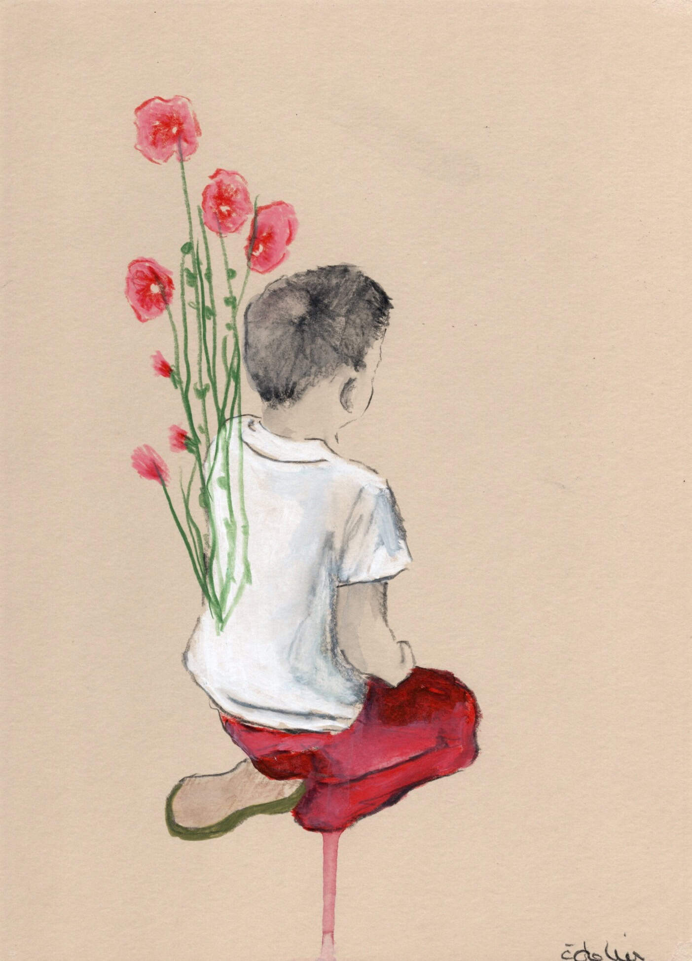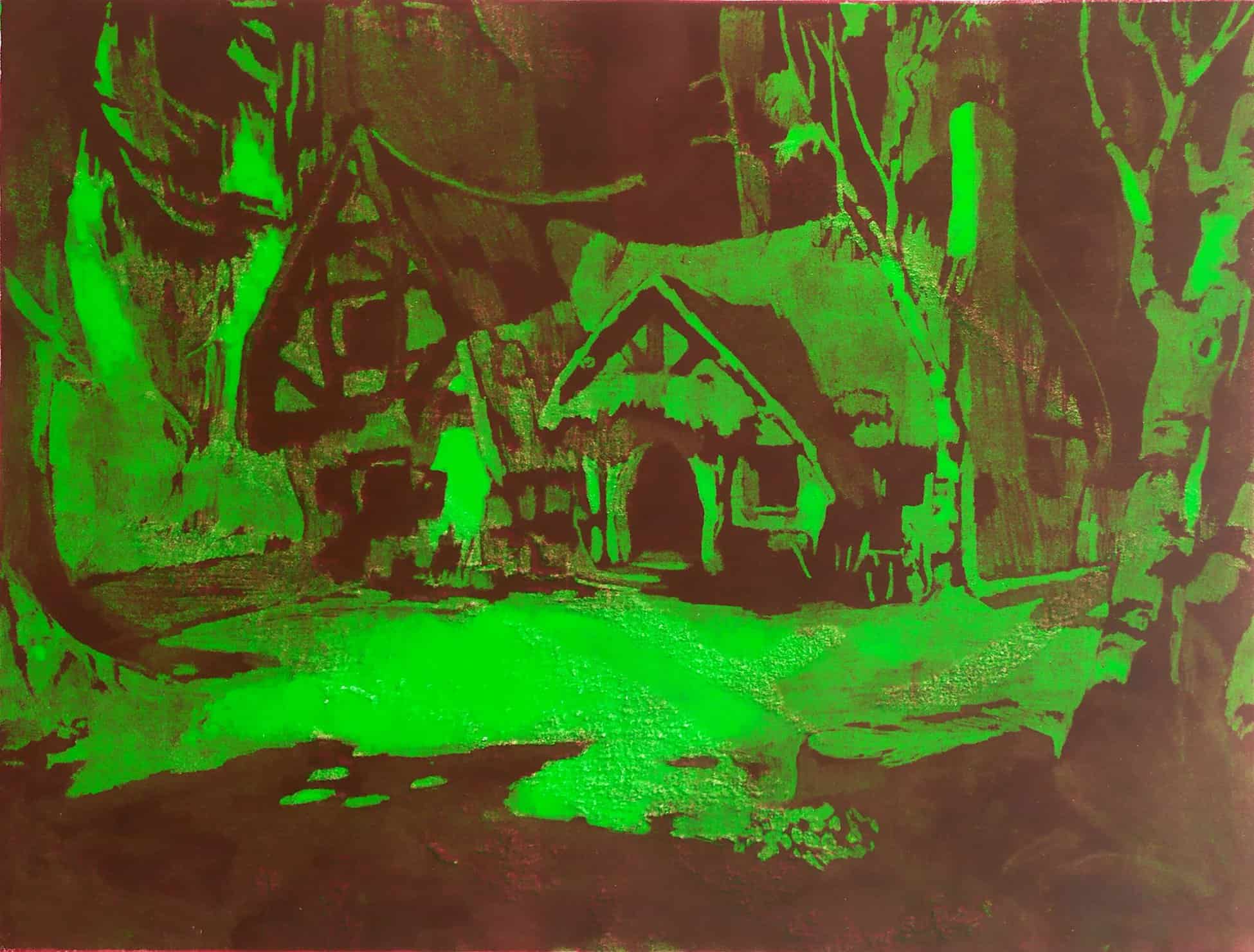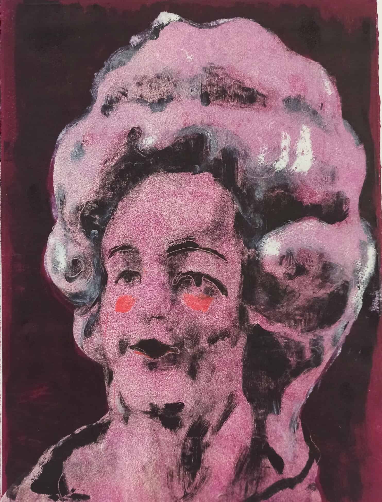 Vicky Fischer est dessinatrice et peintre. Mais si dessiner et peindre sont les mots de son vocabulaire pour décrire sa pratique, il n’en demeure pas moins que la saisie du crayon et celui du pinceau sont presque absentes de sa gestuelle. L’artiste travaille par transposition, par soustraction, par accumulation, superposition, effacement. Le geste est prioritairement celui du transfert. Le transfert d’une image photographique sur papier ou sur toile. L’image photographique est souvent celle que l’artiste a saisi dans son environnement domestique, familial, géographique mais aussi, parfois, dans la presse ou les canaux médiatiques qui regorgent d’images. Ainsi le nain de jardin côtoie le pavillon de banlieue qui lui-même fréquente une princesse monégasque ou un acteur célèbre. Une figurine de céramique répond à la pose figée d’un chien qui lève la patte, et une Barbie laissée en boîte fait de l’œil à un Gnafron plus séducteur qu’il n’y paraît.