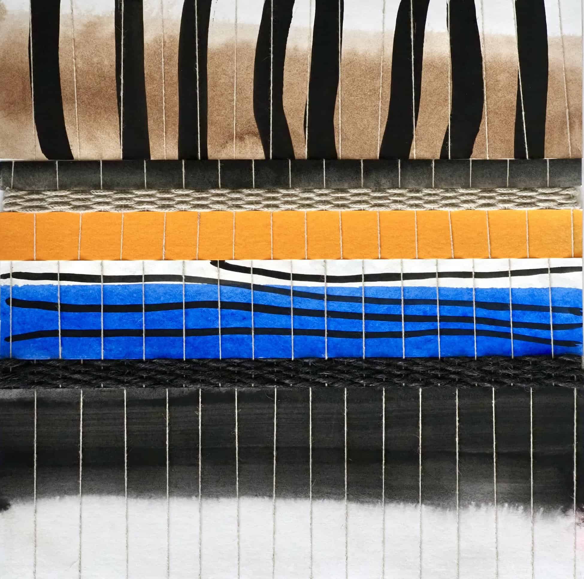 Dans une démarche de restitution, la trame, la structure est présente en appui, en support à des déchirures, des réparations par couture, collage ou tissage.