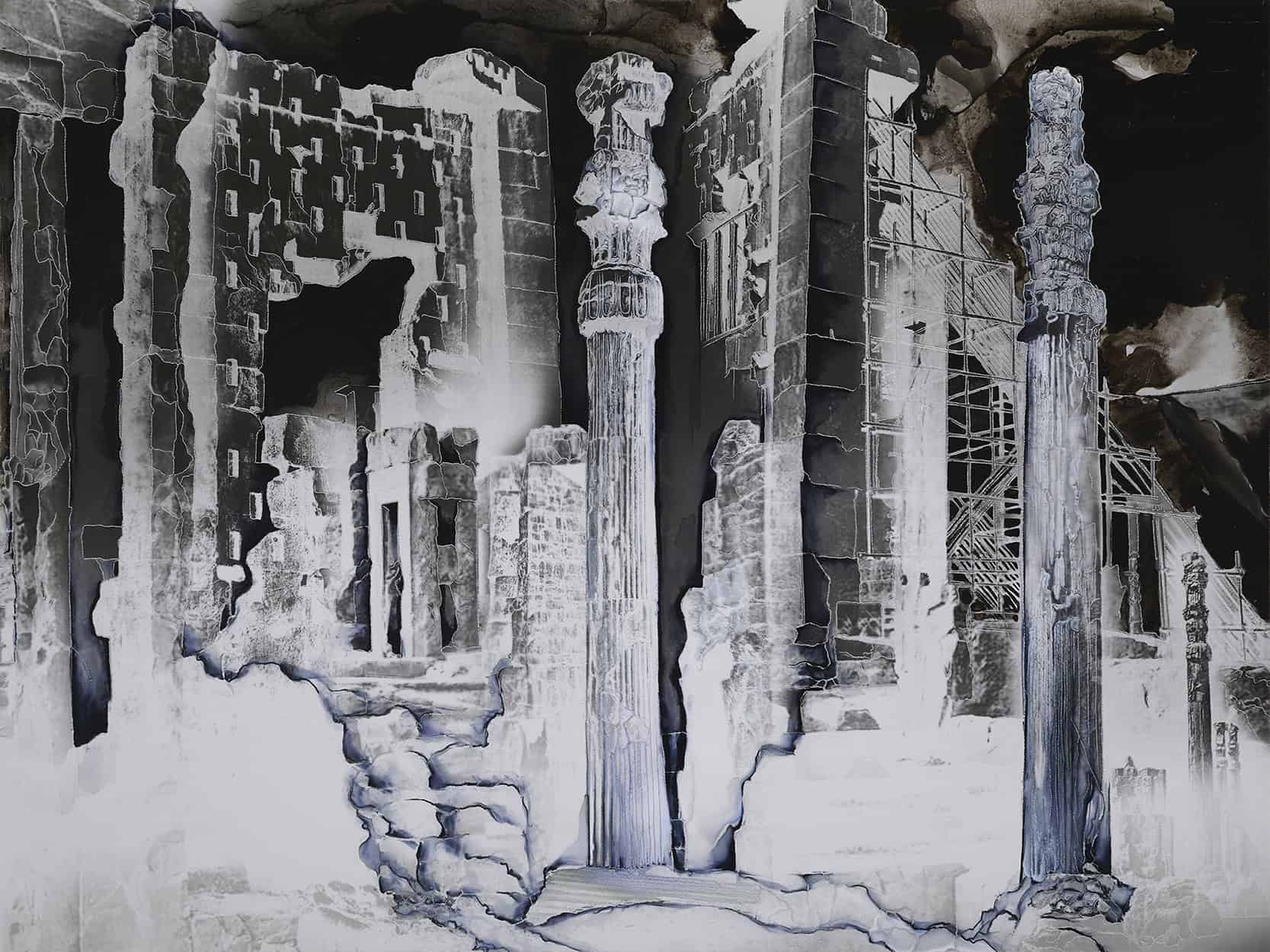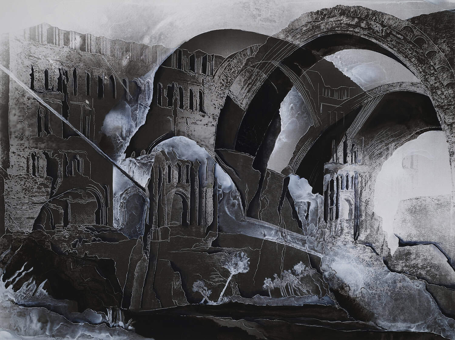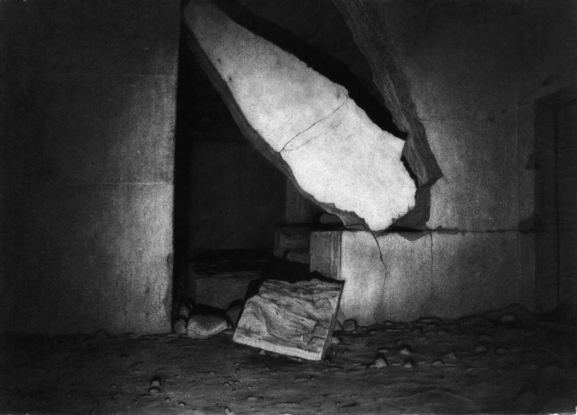 Duo show - artistes confirmée et émergente - dialogue entre dessin et photographie - exploration croisée de la ruine et du minéral, du patrimoine construit et naturel, des traces de notre humanité.