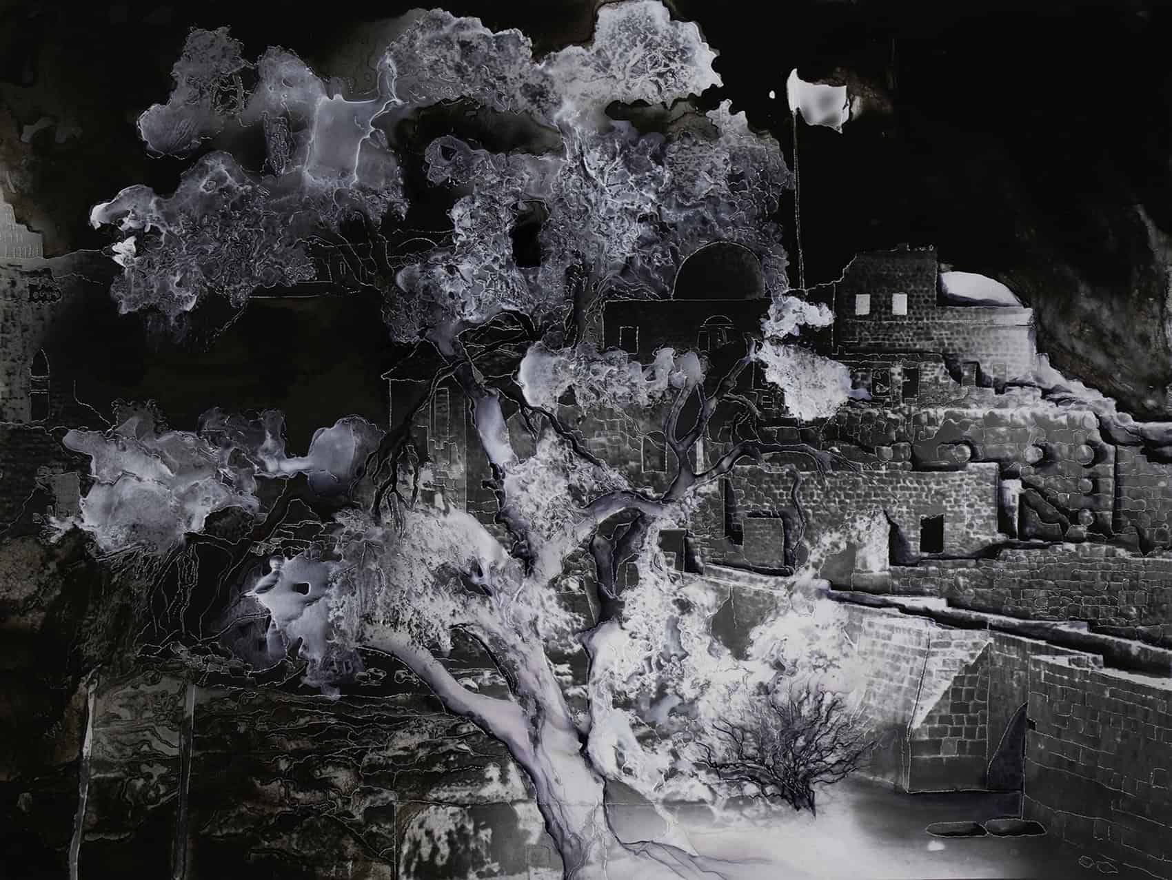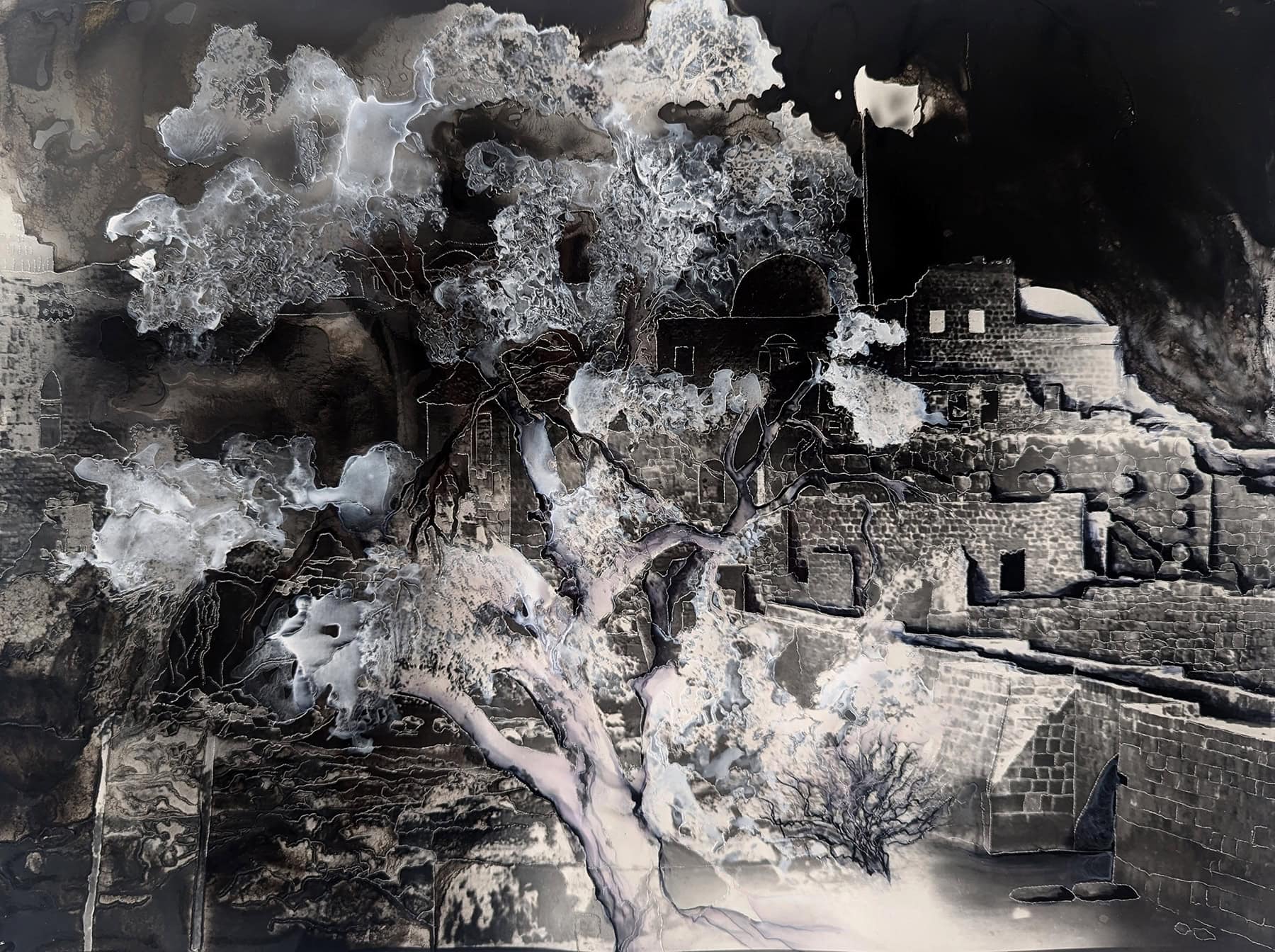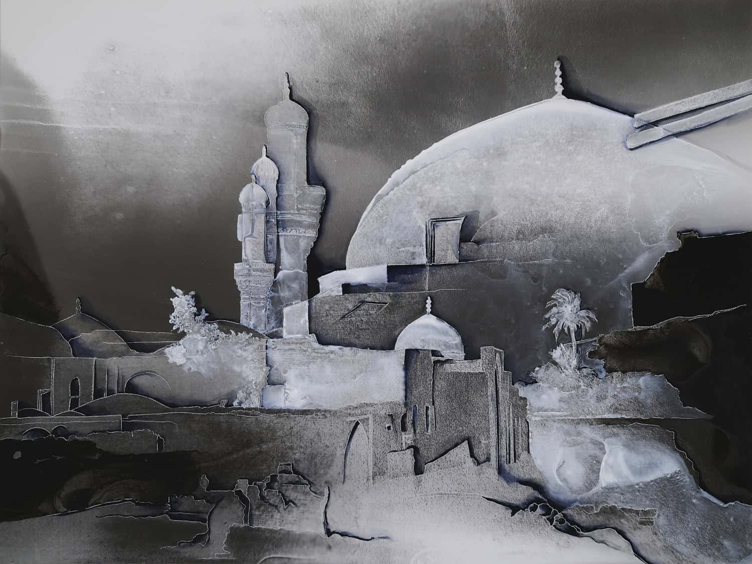 Duo show - artistes confirmée et émergente - dialogue entre dessin et photographie - exploration croisée de la ruine et du minéral, du patrimoine construit et naturel, des traces de notre humanité.