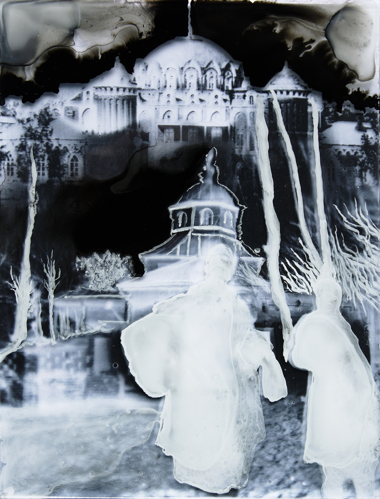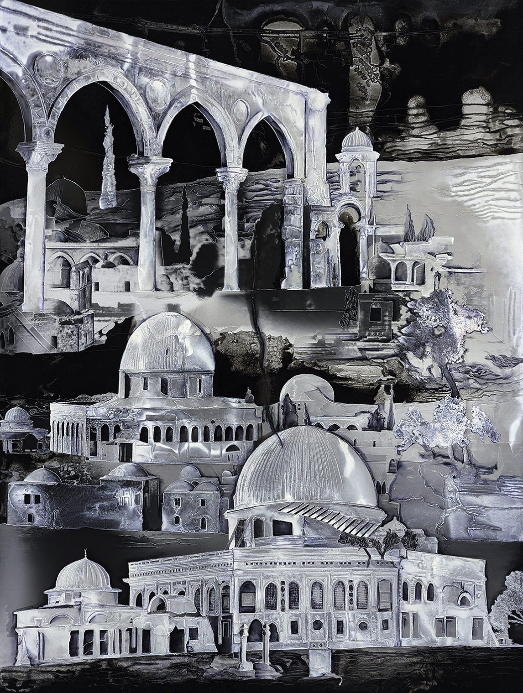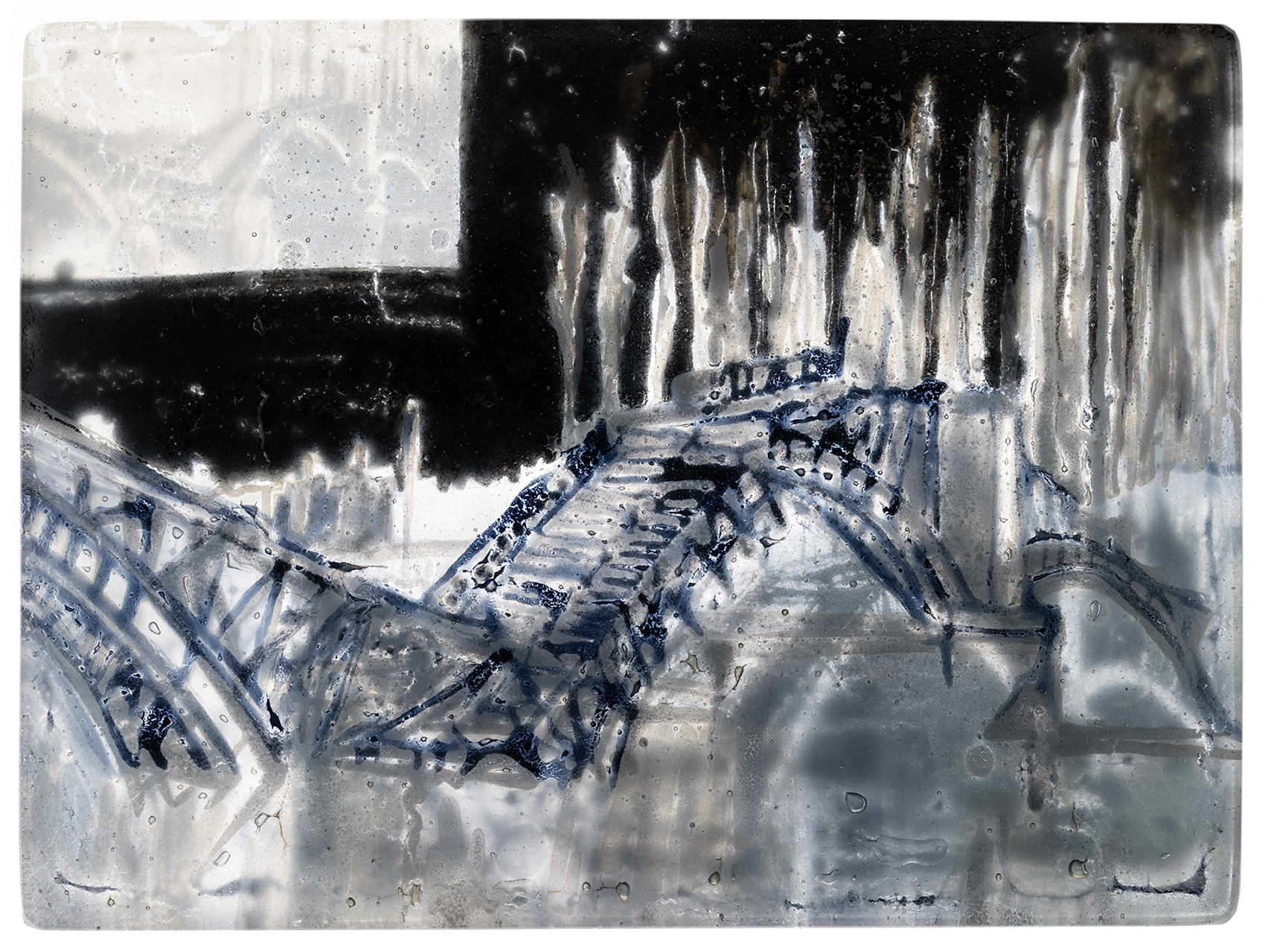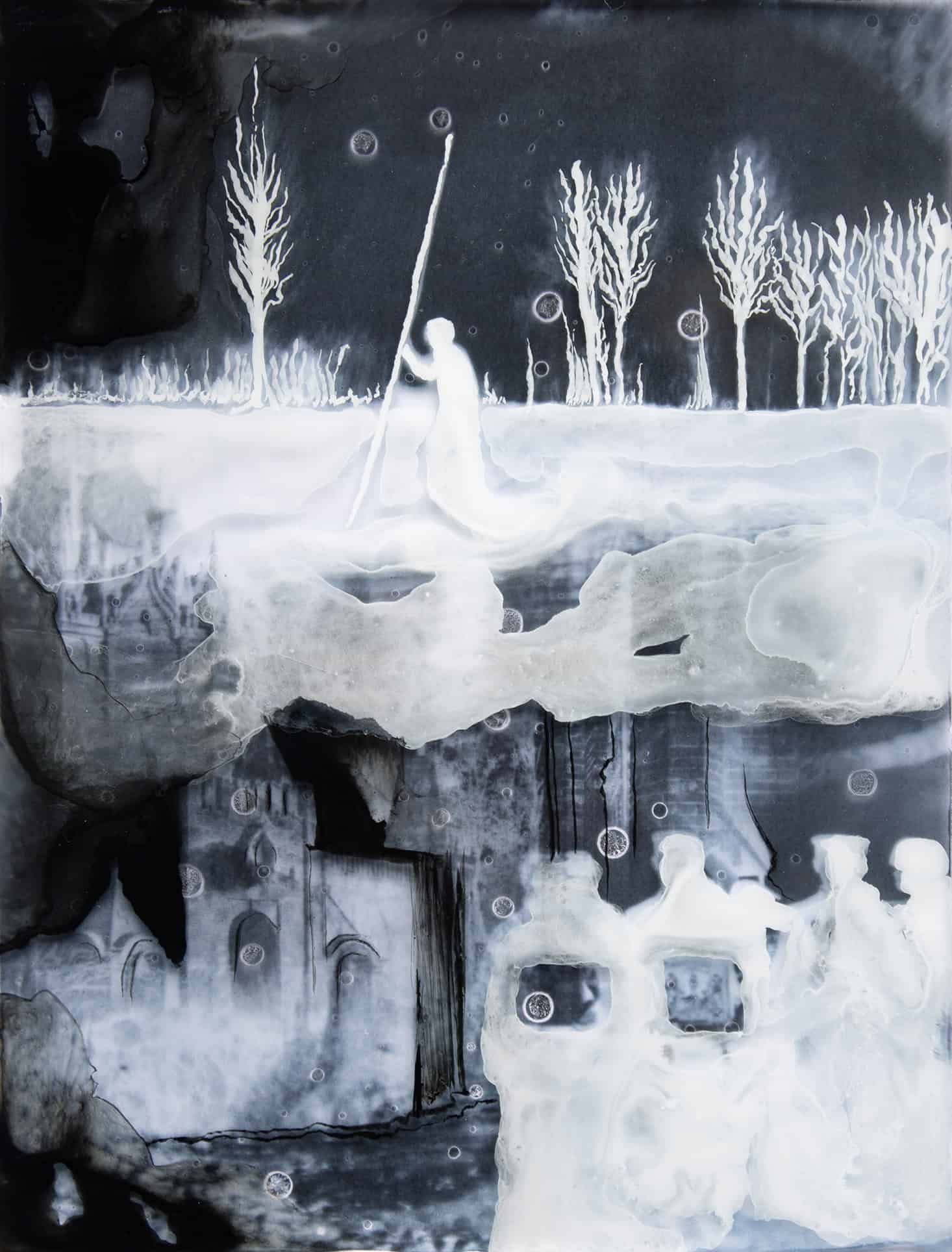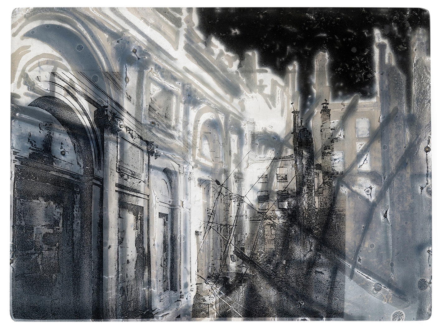 Hybride, le travail de Guénaëlle de Carbonnières (1986) déploie différents processus, mêlant archives, procédés historiques de la photographie, gravure et dessin. Explorant les thèmes de l’archéologie et du patrimoine commun, ses œuvres interrogent notre rapport à l’histoire et à la mémoire. Par superposition de gestes, l'artiste réconcilie diverses temporalités à travers différentes strates de visibilité. Ces œuvres mettent en tension surface et profondeur, latence et présence, figuration et abstraction.
