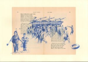 À la mine de plomb ou au stylo BIC, sur papier ou textile, l’artiste cubaine retrace les chemins d’exil de personnes rencontrées dans le cadre de ses recherches. Dans la série Versos libres, elle dessine des scènes de migration sur des éditions originales de poèmes de José Marti. La ligne devient ainsi empreinte : elle marque et efface les frontières non seulement géographiques mais également sociales et culturelles, révélant nos racines invisibles et notre humanité partagée.