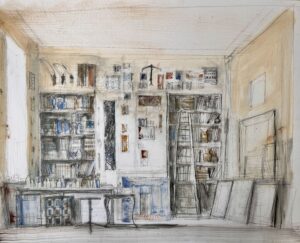 Le travail récent de Pierre Bergian crée un dialogue entre le passé et le présent. Dans ses intérieurs de palais historiques, il révèle ce qui existe tout en y ajoutant une perspective moderniste et contemporaine. Vidant les pièces de leur mobilier, il se concentre sur les murs ornés de peintures de Hammershøi, Rothko et Twombly, aux côtés de carreaux de sa propre collection et d'œuvres de son père, peintre abstrait. Son exposition de 2025 à l'Antiquarian Alberto Di Castro Gallery à Rome nous a conduits dans l'atelier de Cy Twombly. Pour Drawing Now 2026, Bergian présentera sa première série d'œuvres sur papier consacrées aux ateliers d'artistes, sous la forme d'une carte mondiale des chambres d'artistes. Parallèlement à la foire, World of Interiors publiera un article sur le studio de Bergian à Gand.