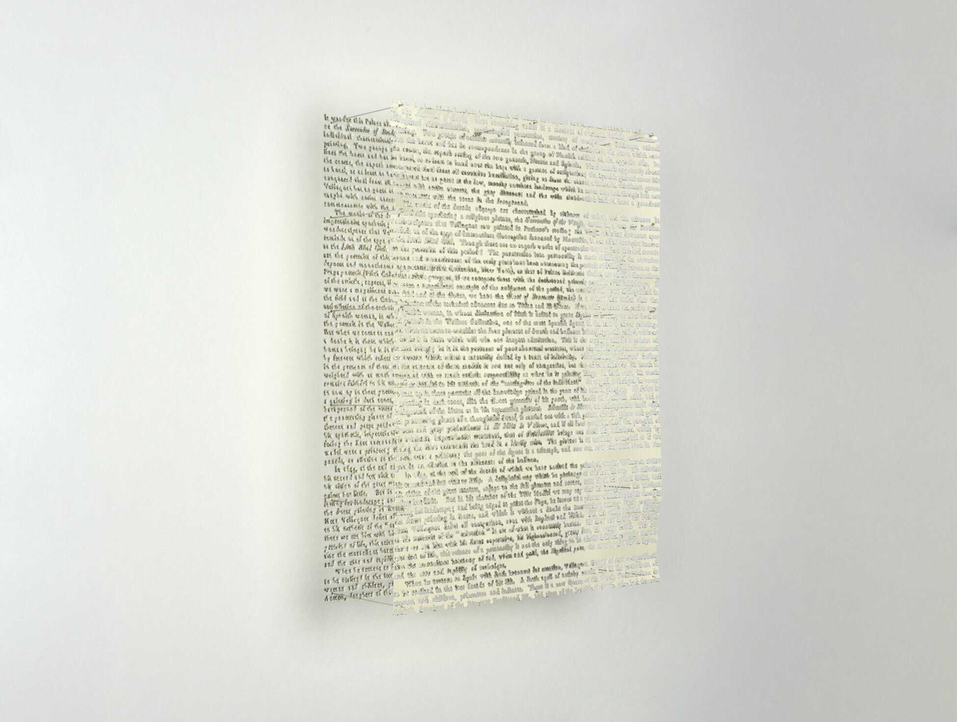 Pour notre artiste vedette, nous vous présentons l'œuvre de Jonathan Callan, qui s'inscrit dans une gamme variée de médiums, de méthodes et de matériaux, liés par une préoccupation pour les limites du langage. Travaillant souvent avec des textes, des livres, des cartes et des photographies, Callan puise une grande partie de ses informations dans des livres d'occasion. Il considère sa propre culture comme une culture essentiellement littéraire et s'est efforcé presque toute sa vie de concilier son intérêt profond pour la matérialité avec cette histoire littéraire omniprésente.